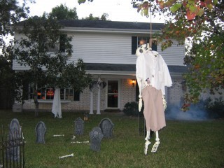 Some previous Halloween photos. They really don't do justice to how the place looks at night, with the lights and the fog machine.
