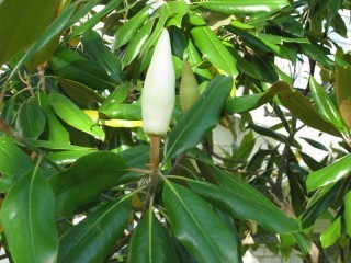 I was hoping the magnolia tree would bloom all at once this year, since we've had a lot of rain, but it's being more conservative about it: