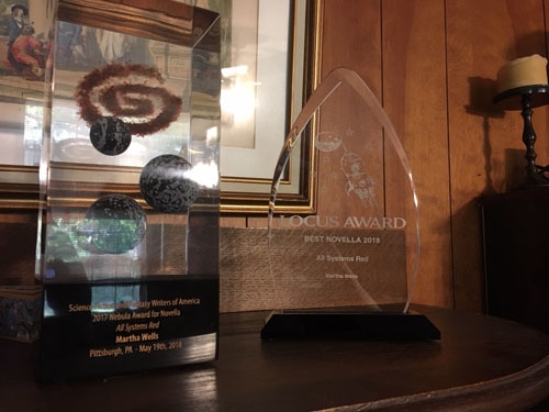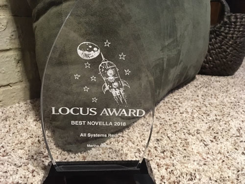 I was at the ALA when the Locus Awards were held and All Systems Red won for Best Novella, so it was awesome yesterday when the award arrived in the mail.