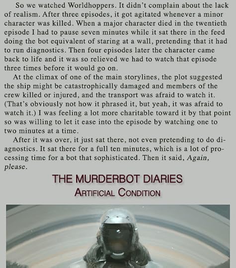 The Murderbot Diaries: Artificial Condition for #bookqw (Book Quote Wednesday) on Twitter http://www.marthawells.com/murderbot2.htm