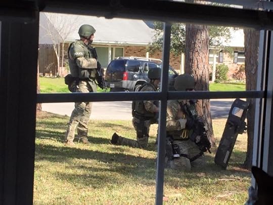 Then the SWAT van showed up. That was freaky enough, but then they knocked on the door and asked if they could look out our upstairs window. So we had a SWAT sniper in our upstairs bathroom for most of the afternoon.