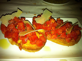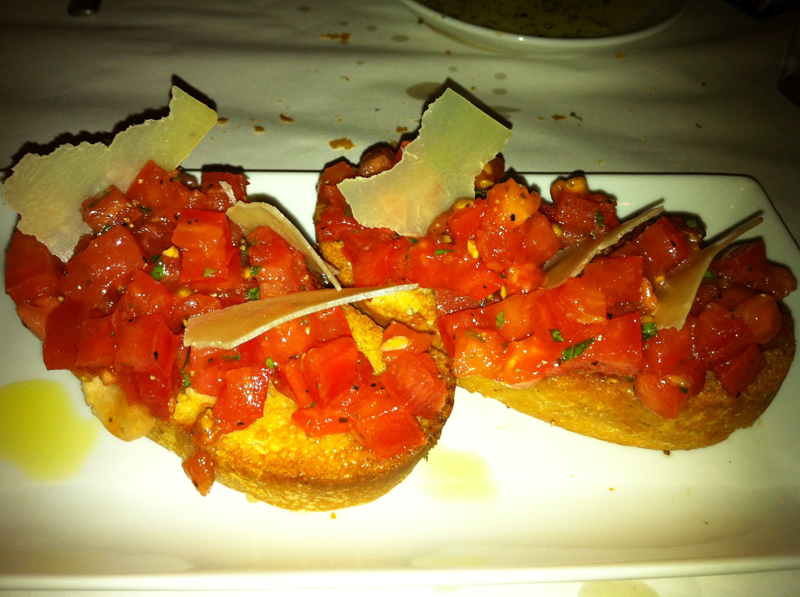 Bruschetta Appetizer at Macaroni Grill - Mmmmm. Though it was lunch time, it was dark enough the flash came on.