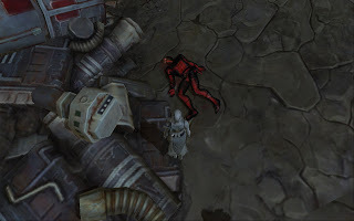 This poor soul had been taken over by a nano machine infestation guided by a malicious intelligence. He glowed and had weird red vapor. If you click for the larger image, you should be able to see it.