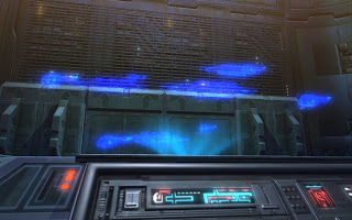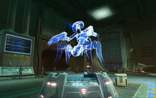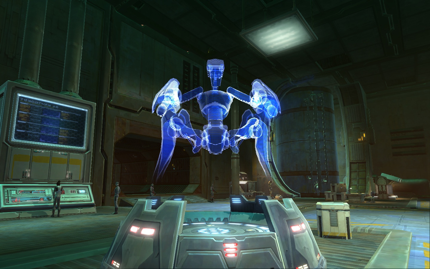 Super cool moving 3D hologram of a weapons driod. If you click for the bigger version you can see labels that pop up around it describing systems and whatnot. So cool!
