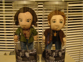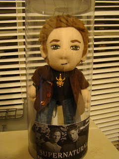 A buddy of mine is creating original jewelry and 8 inch plush dolls as Belaurient Arts. When I heard she'd started taking requests on the plush dolls, and that she was doing some on different TV characters (Sherlock, Dr Who), and seeing how utterly cute they were, I hatched the EVIL PLAN for a friend of mine down in OZ who loves the TV Show Supernatural.