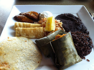 Gloria's Super Special at Gloria's and eaten by Gloria. Hah! Basically a sampler platter of El Salvadorian food.