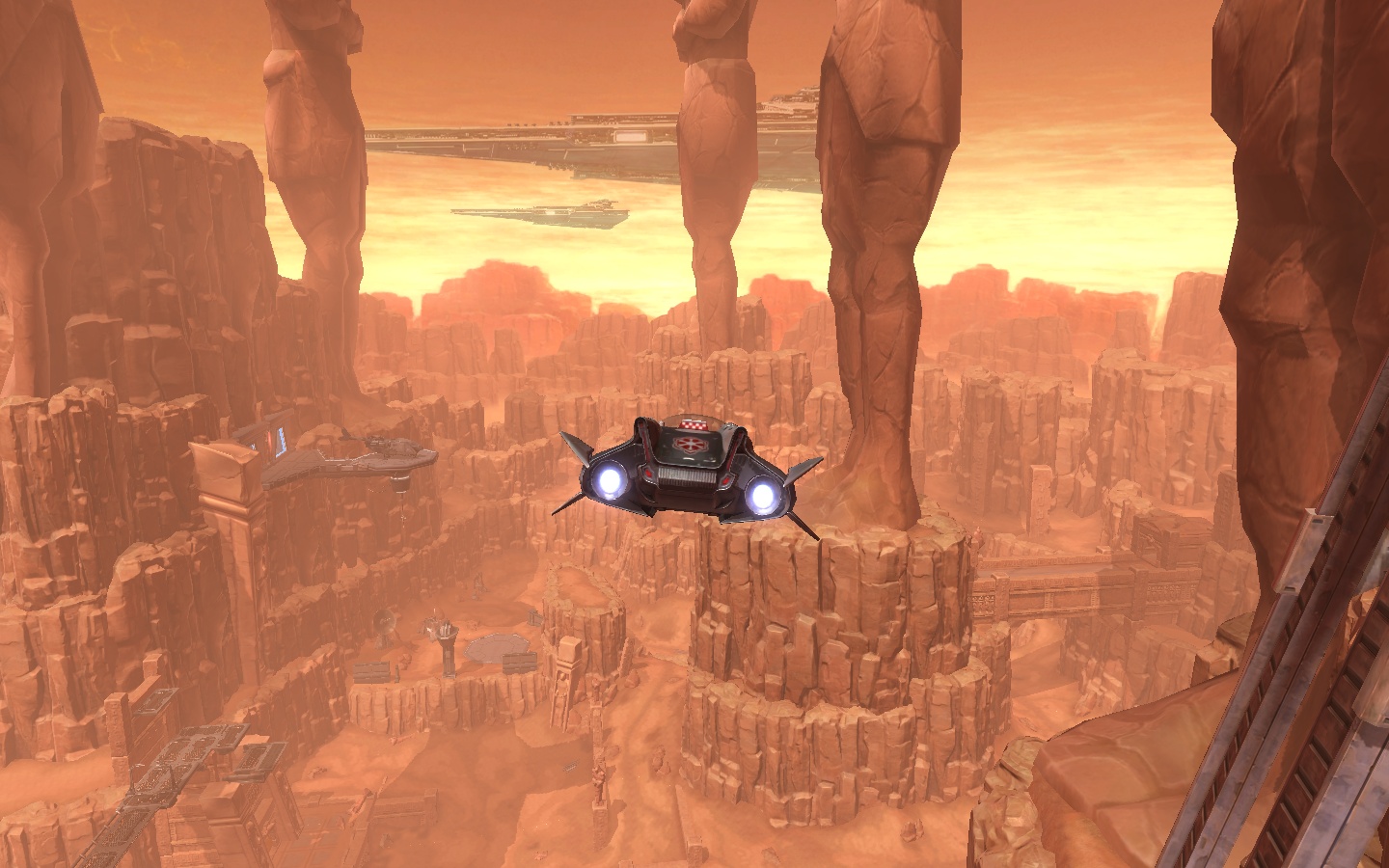 Back on Alderaan a cool view of the ruined road and the giant chunk of land hiding the holocron we found a couple of weeks ago there.