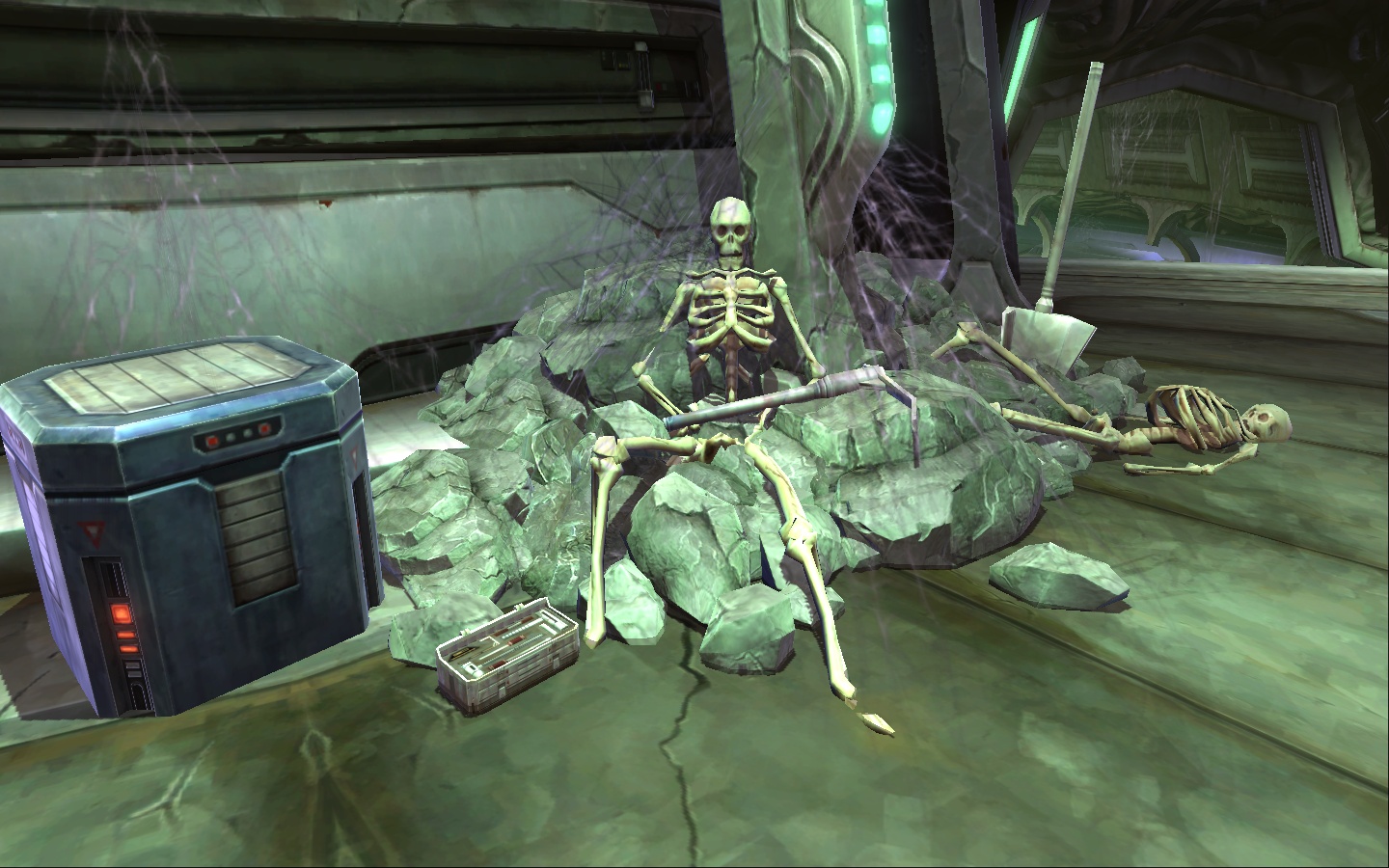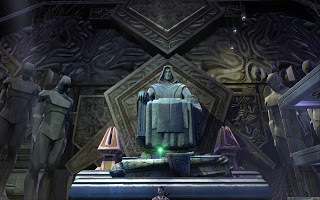 Approach to the Dark Temple. Seems one of the Sith rulers killed and buried multiple other Sith Lords who would take his place and buried them here. Yet now that some terrorists have infiltrated the tomb, they've woken these buried dark lords. And things went ugly. Oopsie!