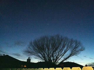 This picture doesn't capture at all the true beauty of the sky this night. The color gradient from dark blue to white was awesome! And with the star up top and the tree...precious.