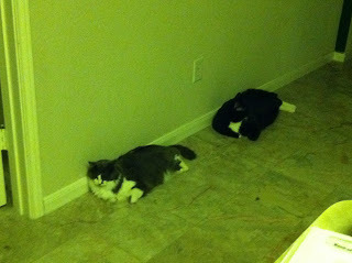 Mythril and Mr Boots. They pretty much did this like synchronized swimmers. They walked down the wall then plopped down. It was to cute!