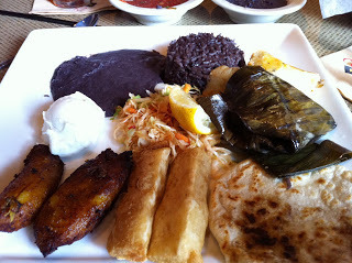 Gloria's Super Special from Gloria's Restaurant. El Salvadorian and Mexican food. Super yummy. Their refried black beans are awesome on chips. Mmmmmm.