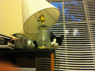 Since I took pics of the dog the other week, figured I couldn't leave out the cats. Above is Subaki. As you can see from the lamp, this is a favorite perch of hers that occasionally suffers for her patronage. :P