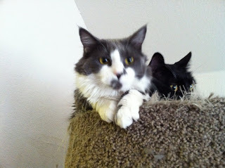 Mythril and Mr. Boots. You can't tell from this angle, but Boots (who's like 2 to 3 times Mythryl's size) is slowly squeezing her off the edge. Heh.