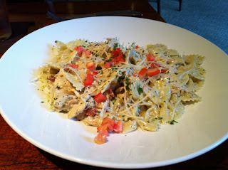 Mediterranean Salad with chicken. What we loved about the chicken is they cut it super thin, so you could really mix it with your food.