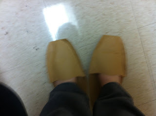 I took a picture of these because I'd never seen such a thing before - paper shoes! Funky!