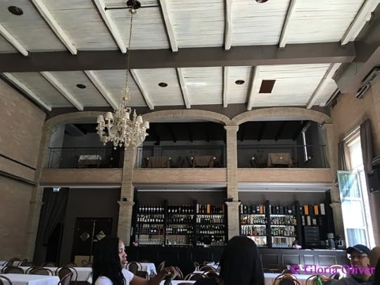 Lovely restaurant with tall windows. Even has an upstairs eating area.