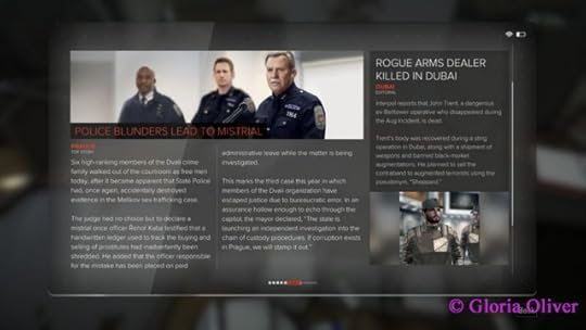 Throughout the game, you will find electronic newspapers. Gives you a peek at how some stories are getting spun and what's going on around the world. :P