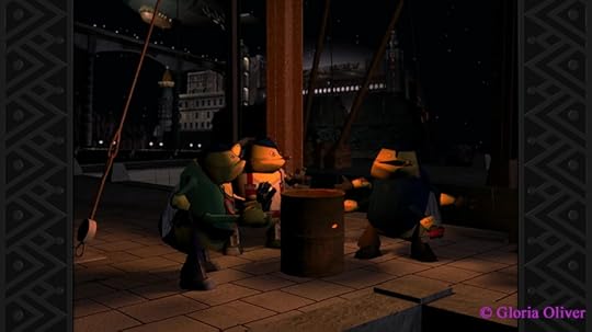 A more lively area of the docks. Worker bees trying to keep warm.
