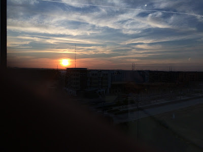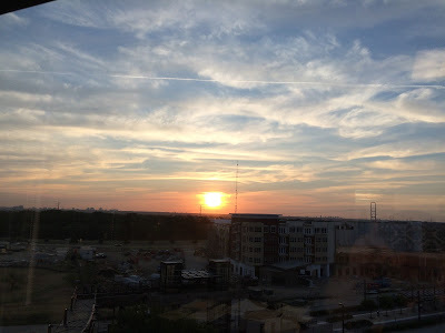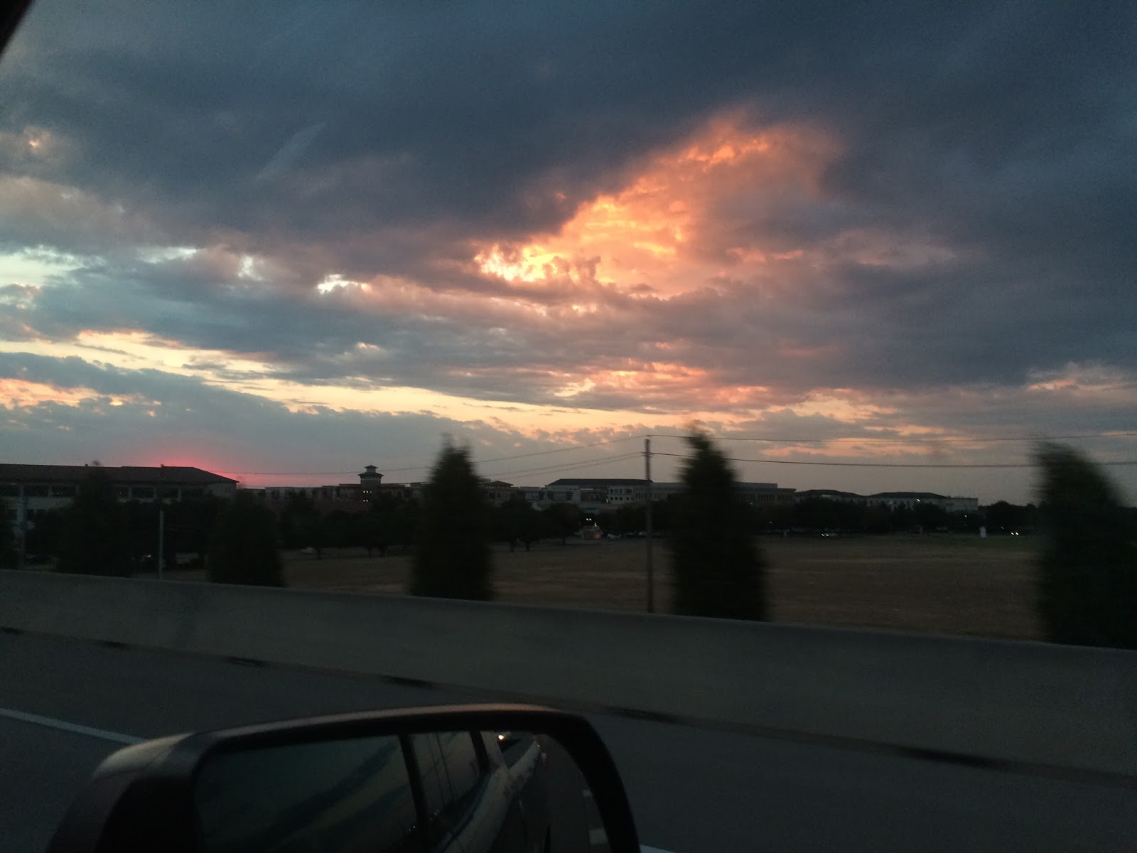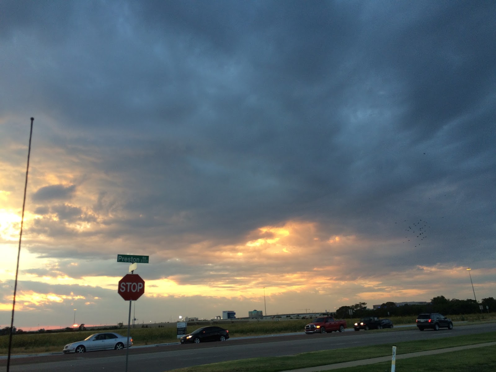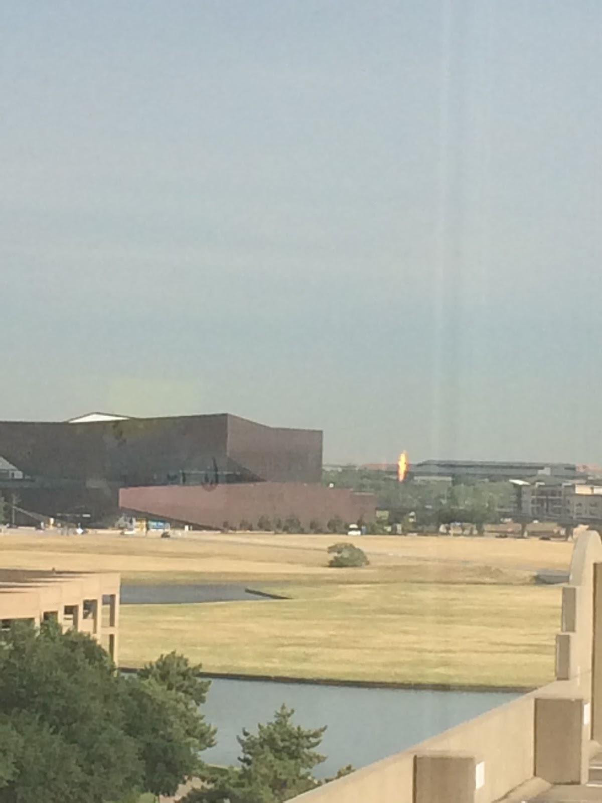 We've no idea what was going on, but there was a constant fire plume by some apartment complex constructions near the Irving Convention Center. You can see it just to the right of the building.