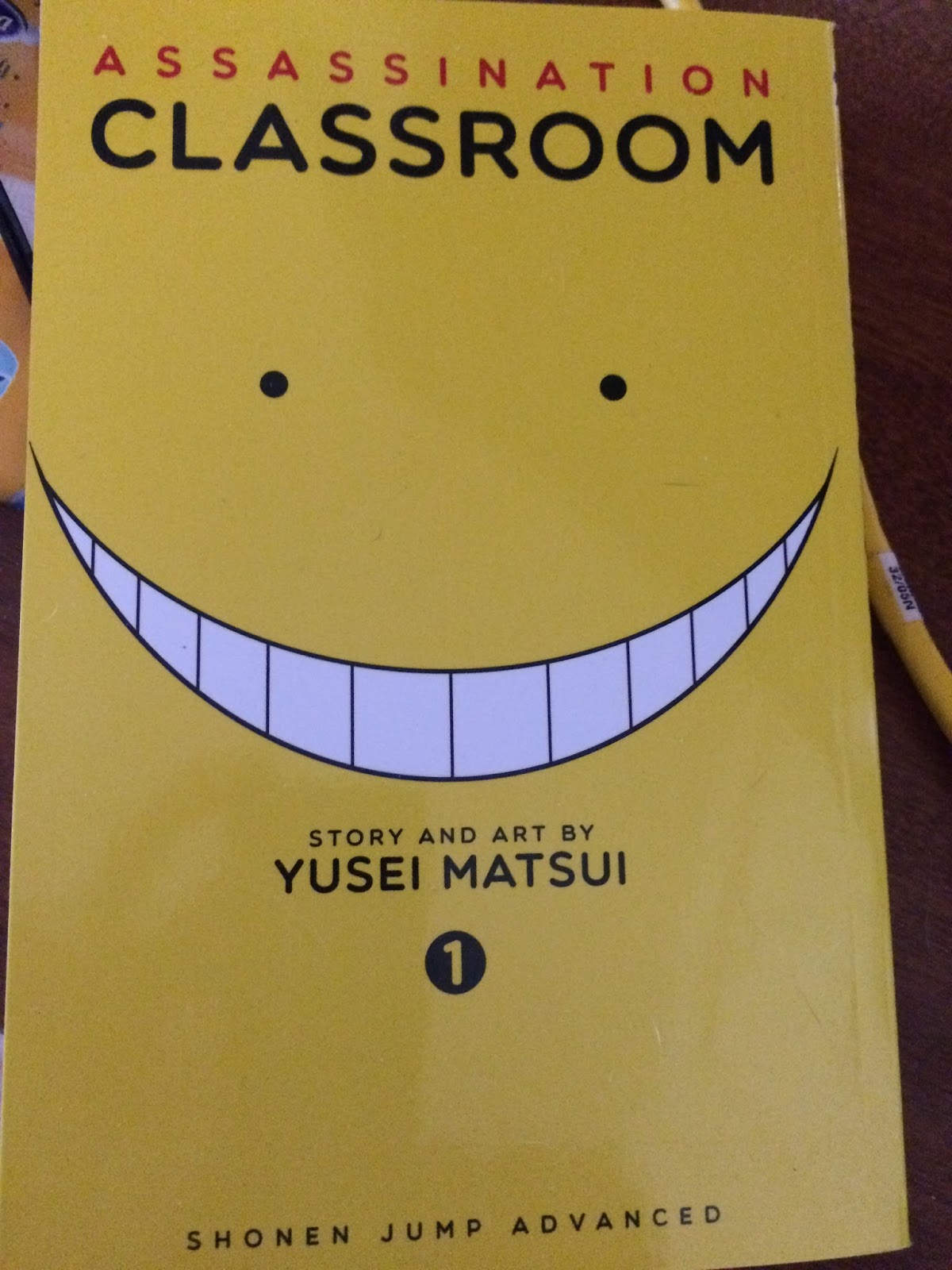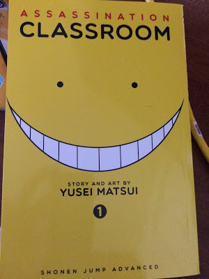 Assassination Classroom - one of the oddest manga ever! I took a picture as I wanted to try to entice A. Lee Martinez to give it a look see. Tentacled Alien teaching class while having the whole classroom try to assassinate him or he'll destroy the earth. Too awesomely bizarre~!