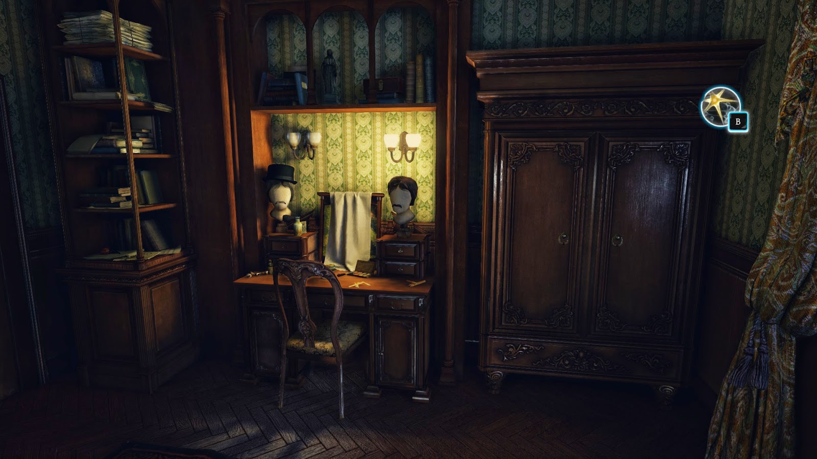 Sherlock's bedroom. Closet has different suits for Sherlock and also disguises (those are locked until needed). There's also a table for changing his hair and face.