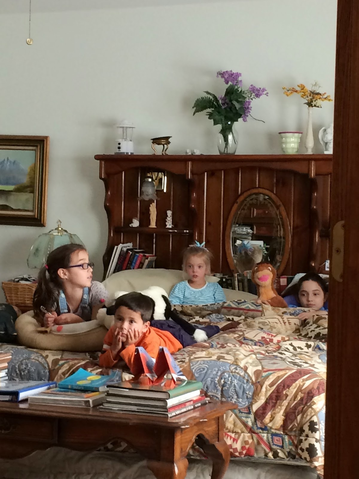 The nieces and nephews avoiding the adults at Thanksgiving. Heh heh. Loved how the doorway just framed them perfectly. :)