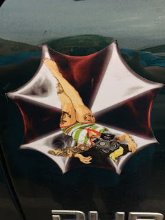 My favorite thing on the vehicle. Old bomber style pinup girl with a gas mask. Perfect!