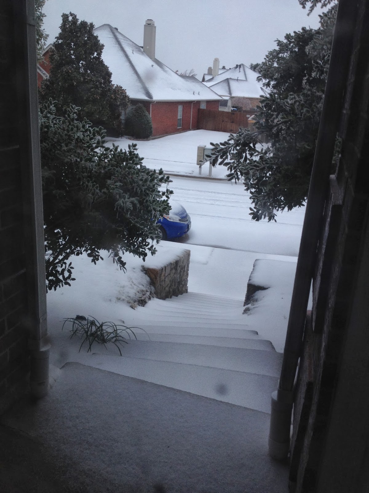 Saturday we tried to clear the steps. This chunk shows we had over 2 inches of ice/sleet accumulate! Mind boggling in Texas.
