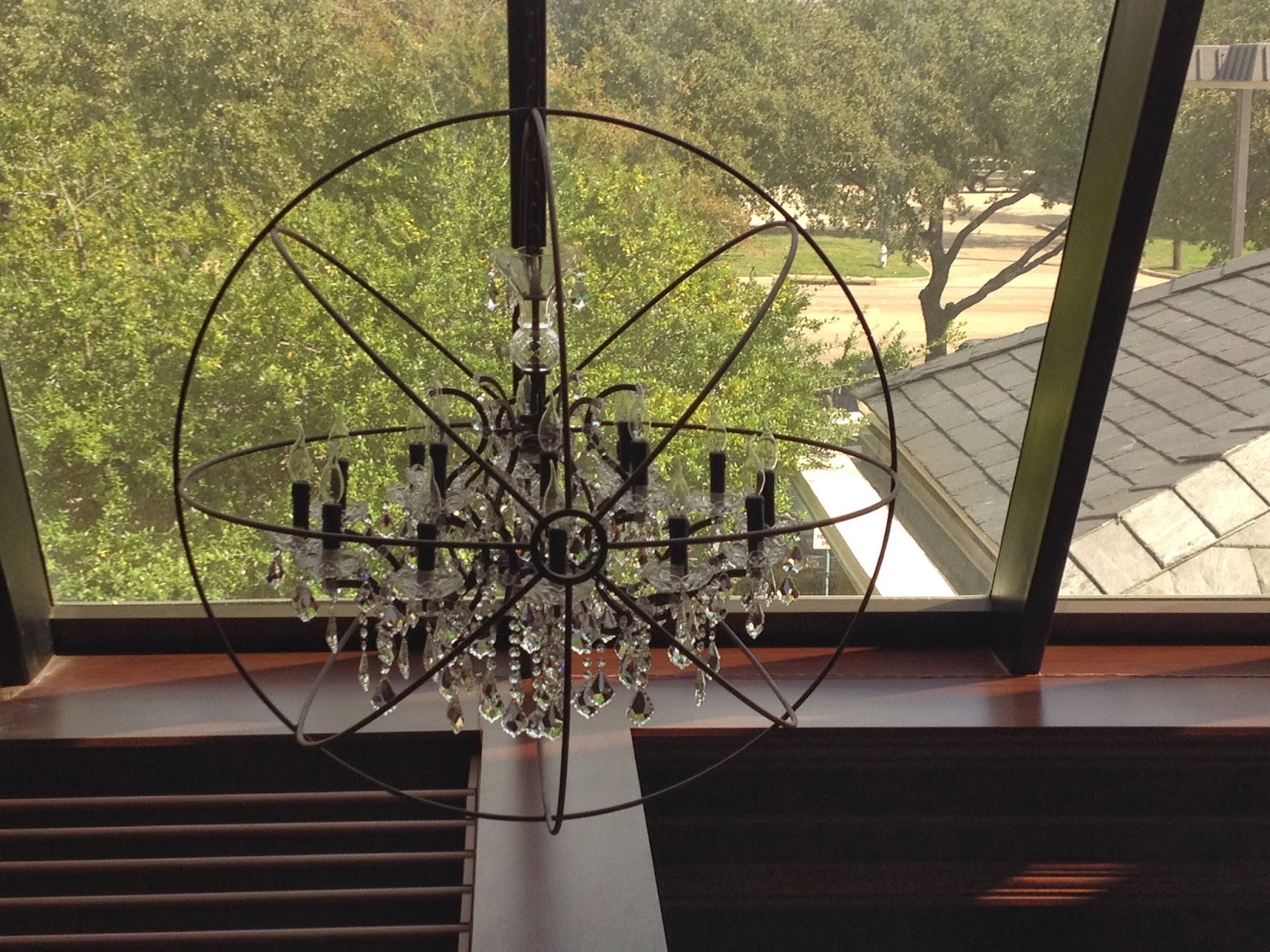 Super cool new chandeliers at the Crowne Plaza in Addison. Loved how the outside looks like an atom. Very fitting with the science panels at the con. :)