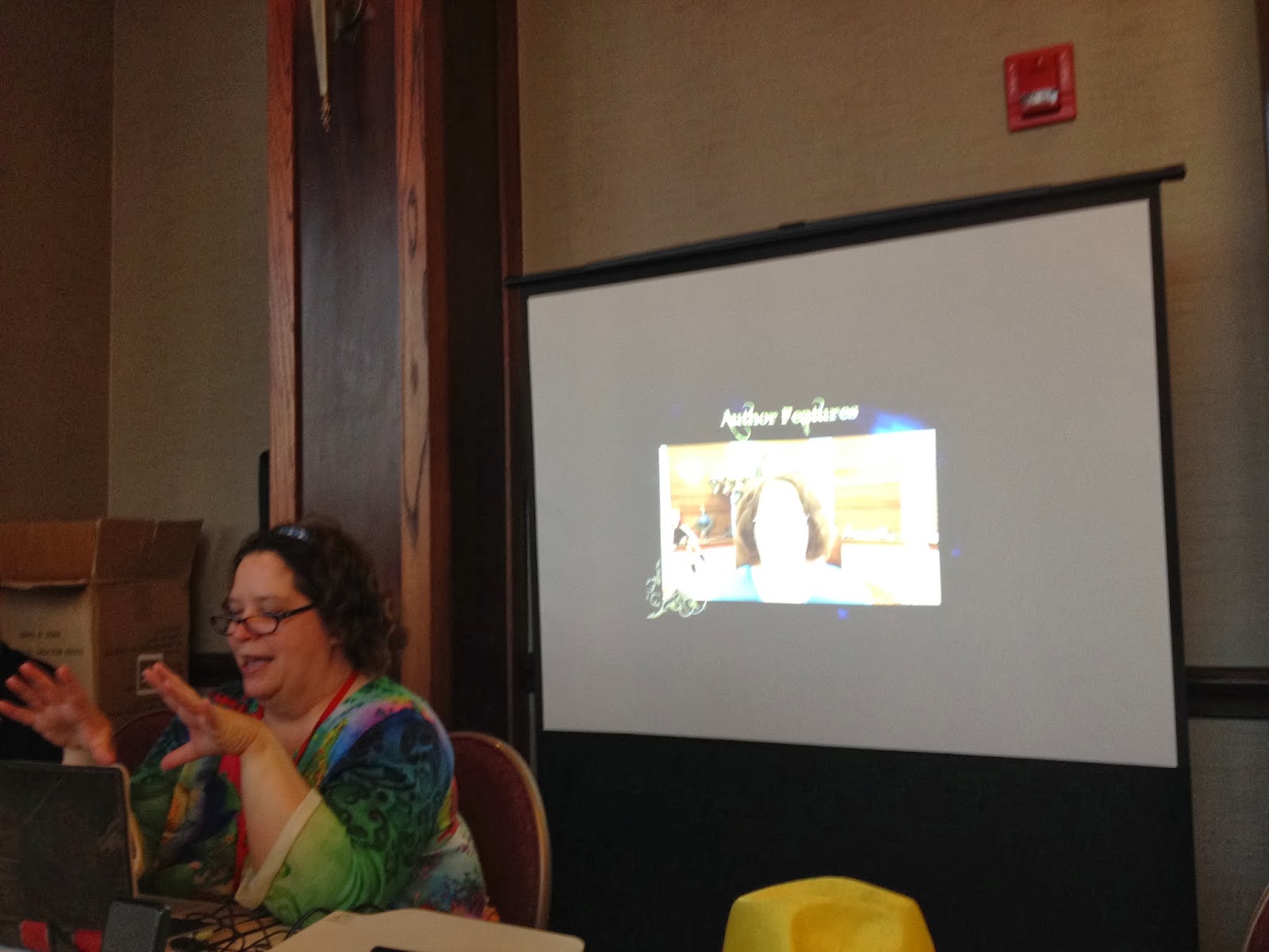 The one and only time the projector worked for Rachel Caine. She got a table this year to promote the coming Morganville Web Series! Oh yeah!