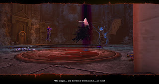 The baddie we were trying to beat here still beat us. Her goal? The blue dragon on the right. The goal we didn't know about? Getting the information on how to create a Dracolich. She teleported out with her gains before we could do anything.