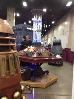 The exhibition hall had different areas. This one had several daleks, the Tardis, and a replica of the Tardi's control panel from one of the movies!