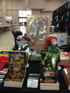 Two of my novels at the Zumaya Publications book and dolls and poster for Rie Sheridan Rose's newest novel - The Marvelous Mechanical Man. (In the middle of reading it - Steampunk and Dime Novel fun)