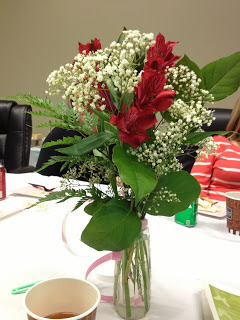 Beautiful flower arrangements at HQ's Baby Shower for one of the accounting peeps.