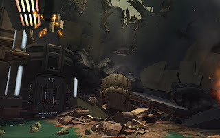 Oh John's smuggler quest we'd taken a shuttle to a ship that ended up self destructing. This is the escape pod and all the lovely damage it made to get us back to the planet.