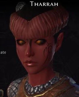 This is me. I ended up going for a half demon/half human (Tiefling) after I'd told him there was no way I would as everyone would probably be doing it. I am so weak. And she's so purty! :)