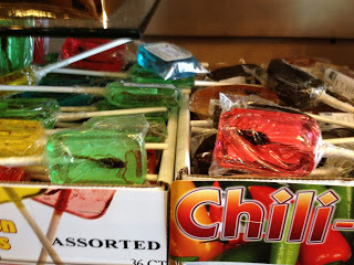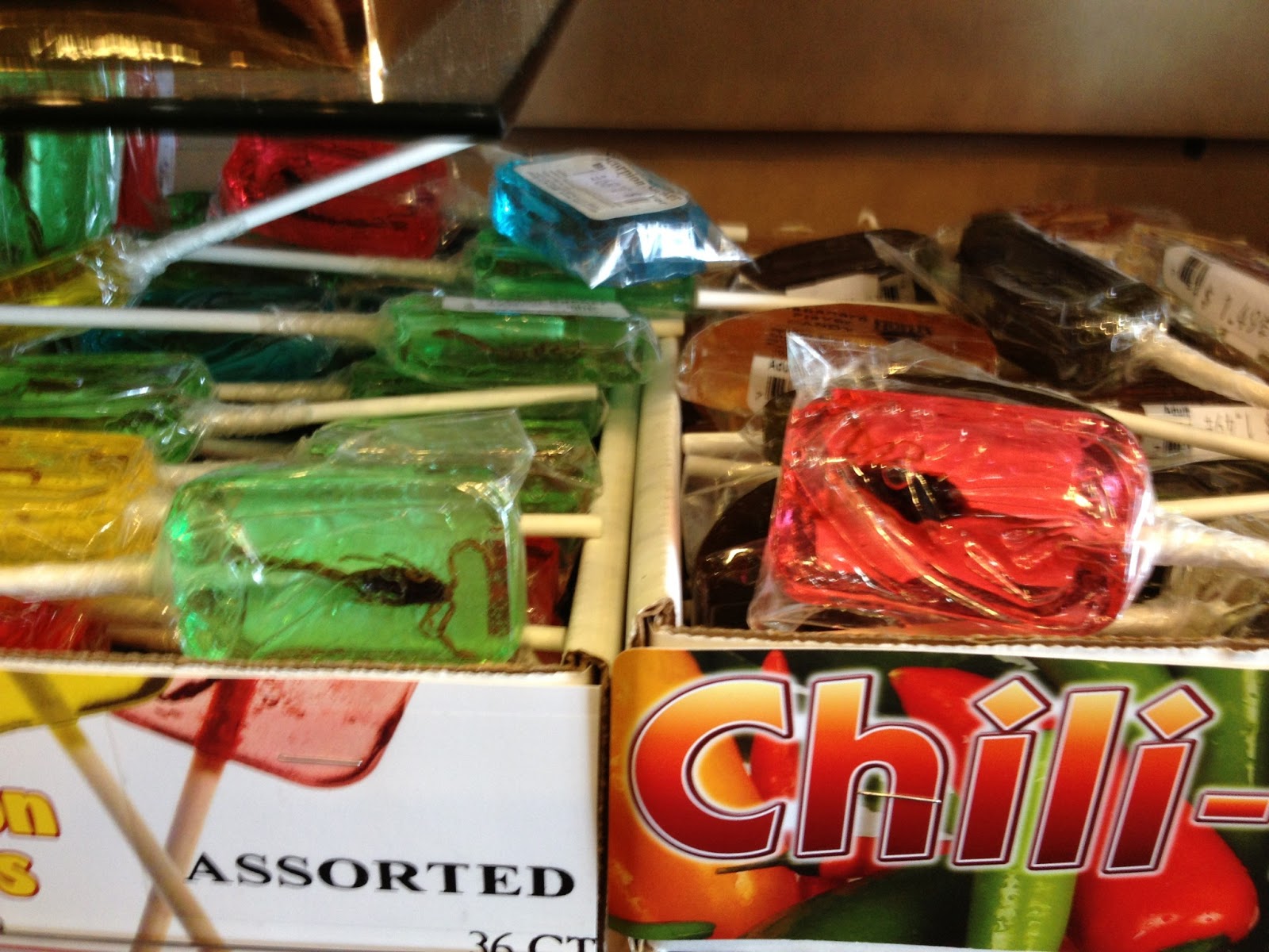 And these I'd even seen on a special on the History channel or some such - Scorpion Lollipops! Right next to the super hot chili lollipops. And yes, all real.