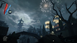 I so totally loved this image. Full moon, clock tower, creepy bridge, and party to the right. :P