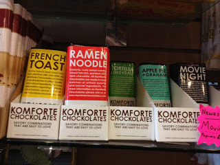 Oh, and look at these lovelies! French Toast Chocolate, Ramen Noodle Chocolate, Tortilla Lime and Salsa Chocolate. They even had Margarita candies and chocolate.