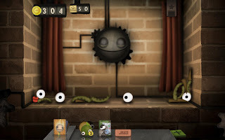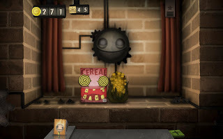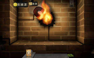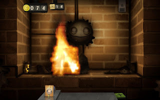 This is what Little Inferno looks like. The face in the middle doesn't do anything (until way later) though the moon and magnet can make the gears move faster. On the top right is the toggle to show you the combo list. On the top left is your cash and stamps. (Stamps can make your delivery of items faster.) At the bottom is the button to open up catalogs and your mail/package shelf.