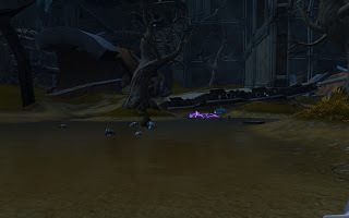 Beasties in the water. In the far back (click to make the image bigger) you can see Sith lightning cooking up a few. Heh.