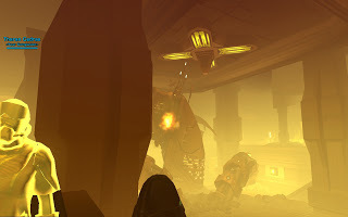 The pic doesn't show it but there a strange yellow smoke that curls out from these lamps. Also can see the handheld mini crossbow in my left hand.