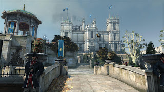 Restarted Dishonored as then I could get pics and also because my daughter kept saying how easy it was to get the ghost badge. (It's NOT!) But dang it if I wasn't going to take up that challenge. Heh heh heh. (For Mission 1 I've now gotten the Vanished and Ghost badges. Bwahahahaha (1st guy super easy, next 2 guys...agony...)
