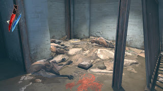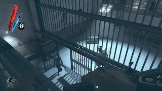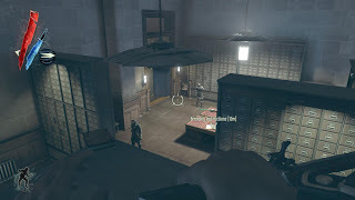 The best place to be, up high. Interrogation room is on the left. Corvo is intimately familiar with it. Later in this mission, I brought Overseer Campbell (one of the men who framed me and killed the Empress) back to brand him as a heretic. Heh heh heh.