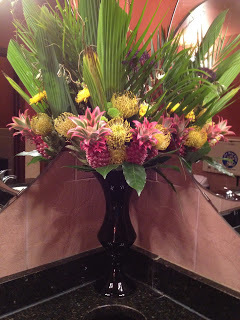 Found this gorgeous flower arrangement at Gloria's Restaurant. (No, not mine! Hush.) :P Very exotic looking.