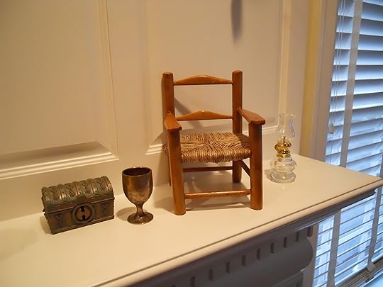 We dined on tiny wee foods (most of which were delicious, indeed) — tiny sandwiches, tiny bits of sausage in pastry, fairy houses (pound cake) dusted with powdered sugar snow, two inch carrot sticks, quarter-size scones, six flavors of tiny jams and jellies, blueberries (fairyfolk like berries, I believe), miniature cookies and cakes and candies, baby rounds of cheese, very fine (as in chopped small) fruit salad and macaroni salad, and even fairy-sized s'mores (see recipe below.)