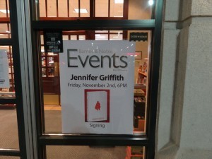 What I *do* like doing is what happened on Friday night–a booksigning at a stores with completely fun staff (who liked my boots) and where cool people showed up and talked to me, long lost friends appeared, family came and hugged me, and some people even bought books. !!!