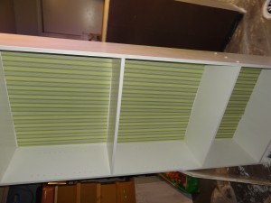Girls’ room bookshelf. WAS icky wood-panel laminate. Now kinda cute white with contact paper in the back. Adding 2 more shelves. And books. Lots of books.