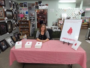 And with that, voila, the customers let it sink in and then everyone cracked a smile. It was funny to watch the identical reactions. A woman who purchased a copy also took a stack of bookmarks to take to her book club and see if they’d like to have it as one of their reading selections. Yeah!