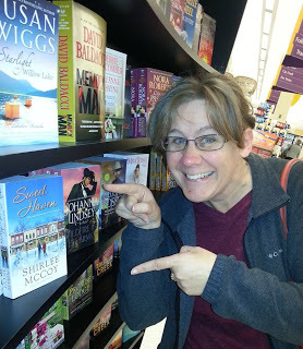 I posted it on FB about a week ago. I look so happy in it, and why wouldn't I be? There is my book. Right on the shelf next to all those wonderful authors that I've been reading for years. I was happy in the picture, and I look really healthy with that nice pink glow on my cheeks.